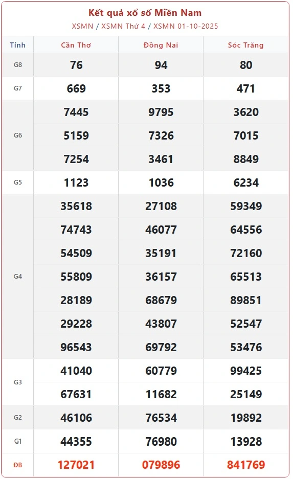 Chốt lô Cần Thơ đặc biệt ngày hôm nay 3/10/2025 như sau: